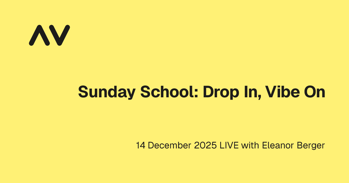 Sunday School: Drop In, Vibe On is a free drop-in session where you can bring whatever’s blocking you, watch live demos of what’s actually possible, and leave ready to build.